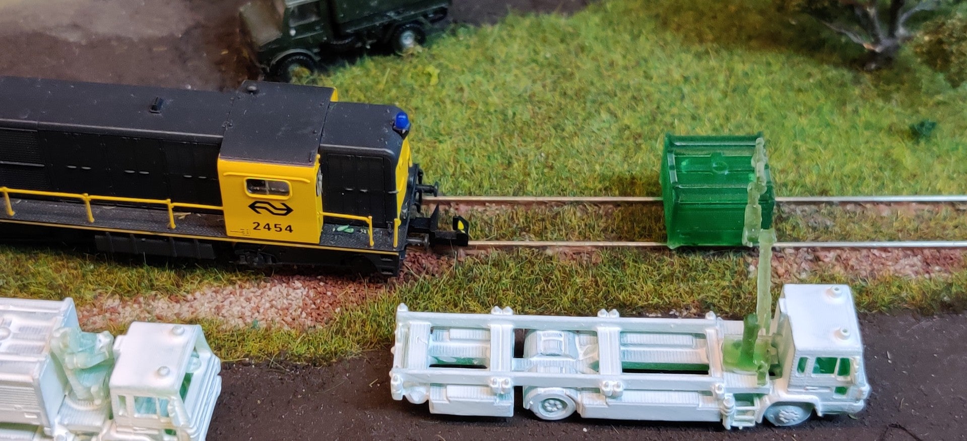 De containers passen precies op 9mm rails (N-spoor). Wel hebben zij vaste assen, waardoor zij niet kunnen rollen op het spoor, gelijk een wagon of rijtuig.