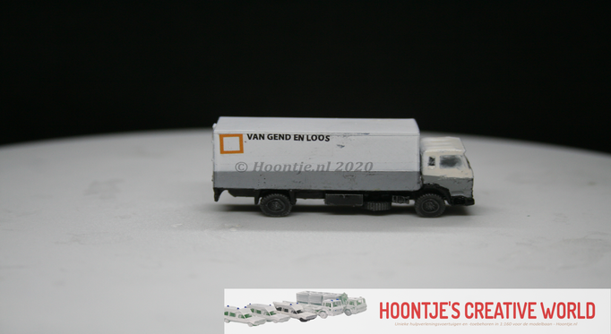 De firma van Gend en Loos reed met dezelfde voertuigen rond, maar dan in opvallende grijs/witte kleurschema's met grote logo's op de bak.