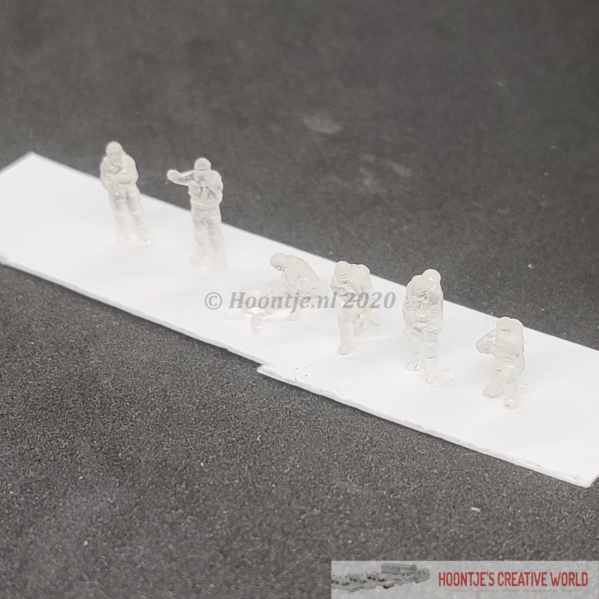 De figurines zijn geprint volgens de laatste, moderne 3D printtechnieken en uitgevoerd in een heldere resin.